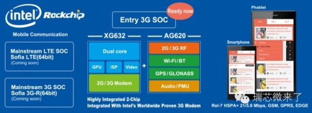 本次展會上,瑞芯微發(fā)布了首款進入通訊市場的入門級3G芯片——XG632,該方案定位于3.5寸-7寸手機(或通話平板)產(chǎn)品,集成度高與成熟的基帶技術,是該SOC方案的最大特性,在入門級通訊方案中具很強的競爭力。