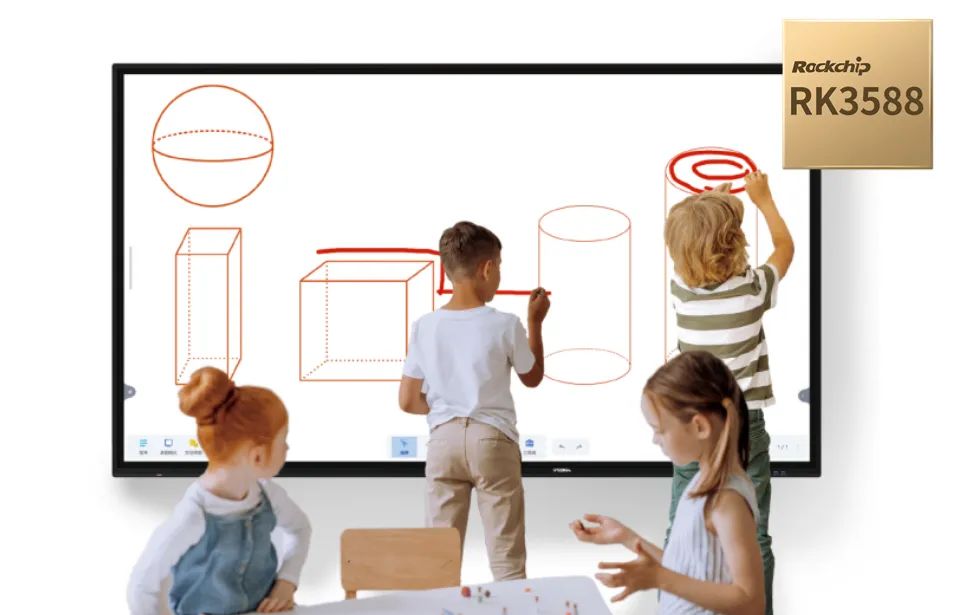 區(qū)別于傳統(tǒng)僅用于教學演示的大屏,搭載RK3588的RC系列集高清顯示、交互式電子白板、電腦、電視、音箱等多功能于一身,可實現(xiàn)內(nèi)容數(shù)字化和學情數(shù)據(jù)化,具備人機交互、智能識別、學習數(shù)據(jù)分析等功能。