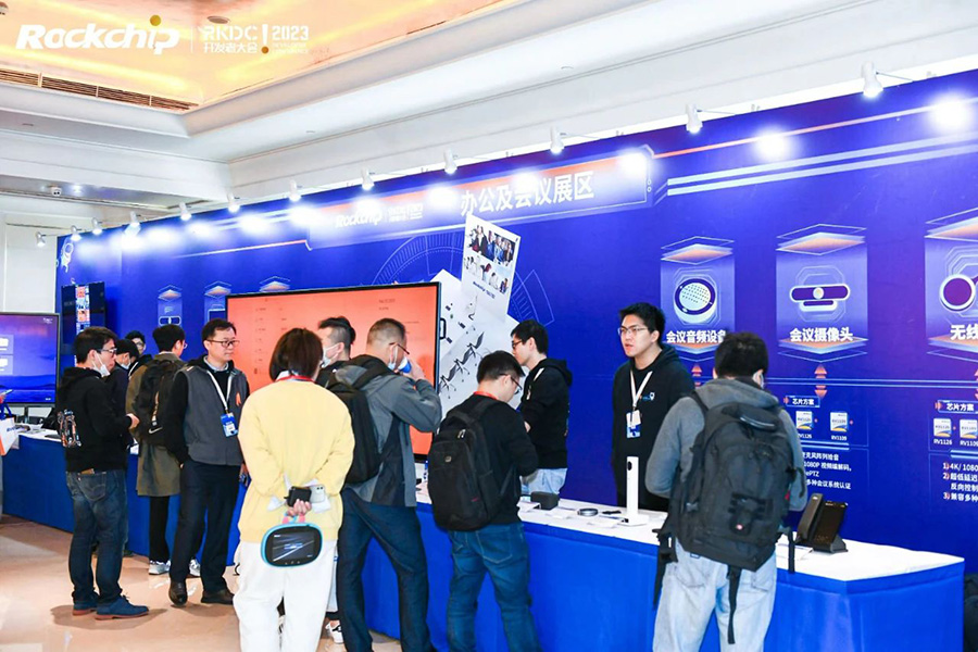 在辦公及會議展區,展出品類包括會議大屏、云終端、會議音頻設備、會議攝像頭、無線投屏等。基于瑞芯微辦公及會議解決方案RK3588、RK3568、RK3566、RK3308的性能加持,讓各類終端極具市場競爭力。