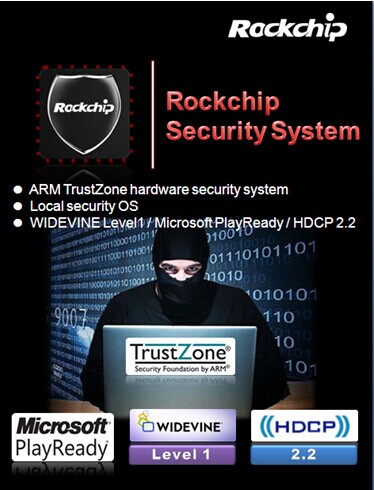 ROCKCHIP SECURITY SYSTEM is a brand new hardware safety solution. It was based on the ARM TrustZone technology and embedded in Rockchip’s ARM Cortex A series of chips. This technology could provide users with greater security and better experience, and realize more simple and convenient connect to digital network. When the user connection is more often and with more application data exchange, Rockchip security system could provide users with more intelligent and quik user secure channel.
